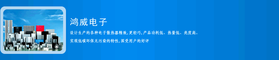 鴻威電子散熱器廠擁有一批具有豐富經驗的高素質科技人員,擁有多年生產電子散熱器的豐富經驗,型材散熱器具有設計新穎、抗蝕性、耐磨性好、節能環保、重量輕、散熱性能好的特性